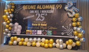 JEJAKHITAM.COM (MAKASSAR) – Alumni SMK Negeri 1 Makassar Angkatan 1999, menggelar acara Reuni Perak Celebration ke-25 Tahun dirangkaikan Halal Bi Halal dengan mengusung tema, “Merangkai Kisah, Menjalin Silaturahim”.