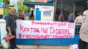 Selain itu, mereka juga tampak menyegel kantor Desa Tompobulu, Kecamatan Tompobulu, Kabupaten Maros.