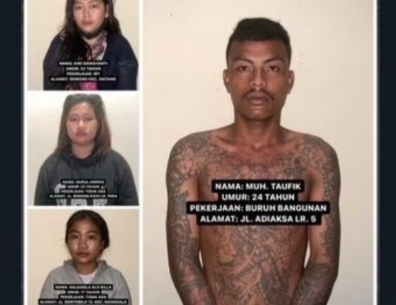JEJAKHITAM.COM (MAKASSAR) – Aparat gabungan dari Jatanras Polrestabes Makassar bersama Resmob Polsek Panakukang, berhasil meringkus 4 (empat) pelaku penganiayaan terhadap seorang perempuan hingga telanjang dada di sebuah hotel di Kota Makassar beberapa hari lalu, yang videonya sempat viral di media sosial.
