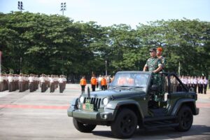 JEJAKHITAM.COM (MAKASSAR) – Pangdam XIV/Hasanuddin Mayjen TNI Dr. Totok Imam Santoso, S.I.P., S.Sos., M.Tr (Han), M.H., memimpin langsung gladi bersih Upacara Peringatan HUT TNI Ke-77 Tahun 2022, yang berlangsung di lapangan Karebosi Jalan Ahmad Yani, Senin (03/10/2022).