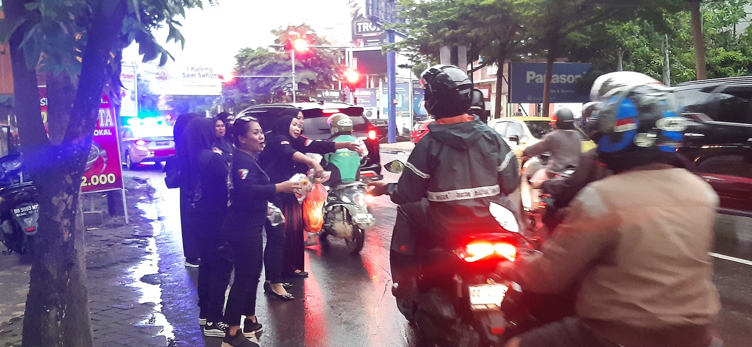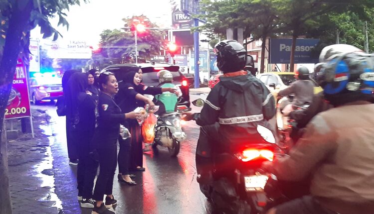 Tampak para srikandi-srikandi KIWAL itu begitu antusias membagikan takjilnya kepada para pengendara yang melintas di jalan tersebut.