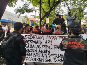 JEJAKHITAM.COM (MAKASSAR) – Ratusan massa aksi dari Majelis Pimpinan Cabang (MPC) Ormas Kiwal Garuda Hitam Kabupaten Gowa, menggelar aksi unjukrasa didepan kantor Balai Pengelola Transportasi Darat (BPTD) Wilayah XIX Sulselbar, Jalan Letjend. Hertasning No. 11/1, Kelurahan Kassi-Kassi, Kecamatan Rappocini, Kota Makassar, Senin (09/01/2023) siang.