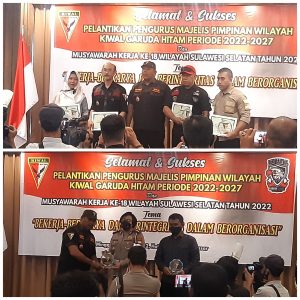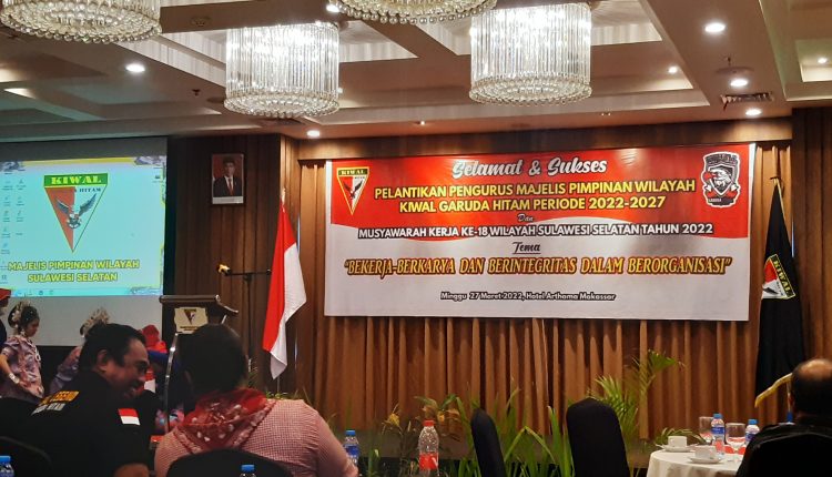 JEJAKHITAM.COM (MAKASSAR) – Organisasi Kemasyarakatan (Ormas) Kiwal Garuda Hitam Sulawesi Selatan, menggelar acara pelantikan Pengurus Majelis Pimpinan Wilayah (MPW) masa bakti 2022-2027, yang dirangkaikan dengan Musyawarah Kerja Wilayah ke-18, dengan tema “Bekerja-Berkarya dan Berintegritas Dalam Organisasi”.