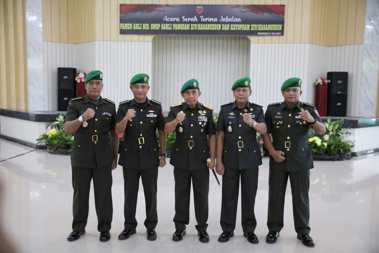 “Selanjutnya, kepada Kolonel Inf R. Suratno, S.I.P., dan Kolonel Ctp Subekti, S.T., M.Si., yang baru saja menerima tugas dan jabatan selaku Pamen Ahli Bidang OMSP Sahli Pangdam XIV/Hasanuddin dan Katopdam XIV/Hasanuddin, saya ucapkan selamat atas jabatan yang baru,” sambungnya.