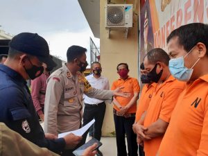 Kapolres Gowa AKBP Budi Susanto, S.I.K, yang didampingi Kasubbag Humas dan KBO Reskrim Polres Gowa menggelar Press Confrence, yang disesuikan dengan protokol kesehatan dihalaman Mako Polres Gowa, Senin sore (01/02/2021).