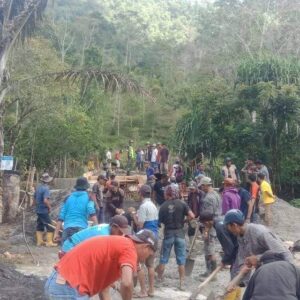 Tampak di lokasi, warga desa begitu antusias dan bersemangat mengerjakan jembatan yang menjadi salah satu akses jalan utama dalam menjalankan aktifitas kesehariannya.