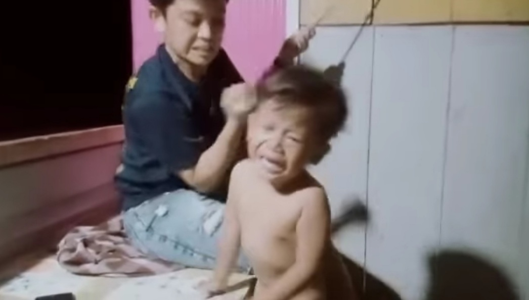 Dalam video tersebut, awalnya pemuda itu sedang bermain hp, sementara didepannya berdiri seorang bocah laki-laki bertelanjang dada sedang menangis. Tak berselang lama, pemuda itu meletakkan hp nya dan mulai menarik tangan bocah malang itu. Tak sampai disitu, pemuda itu mulai menggertak dan melayangkan pukulan secara bertubi-tubi ke wajah anak kecil itu sehingga membuat anak itu menjerit kesakitan. Bukannya dibujuk agar diam, pemuda itu malah kembali membentak dan menampar serta meninju kepalanya hingga berkali-kali.